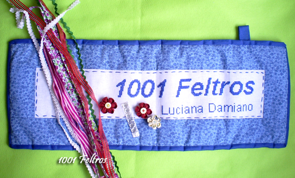 Olha só o que veio junto! Insumos e um super panô, com a minha marquinha!! Eu ía deixar para postar depois, porque combinamos que ela faria uma parte e eu outra, colocando uns apliques em feltro. Mas não resisti a mostrar o trabalho dela para vocês pois ficou muito lindo e depois que eu tiver completado a decoração, eu volto e mostro o resultado final, ok?