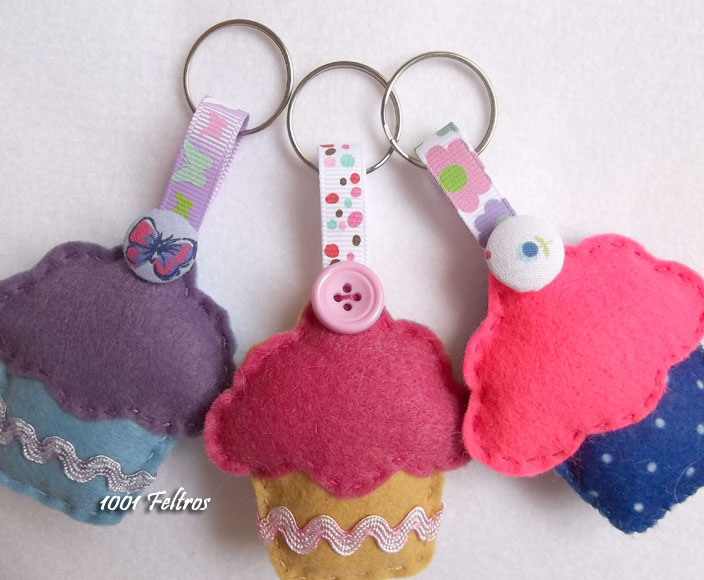 Olá Luciana! Por ai encontram-se muitos cupcakes em feltro, mas estes estão fora de série. adoro o promenor dos botões e as fitas dos porta-chaves são um miminho pegado! adorei!