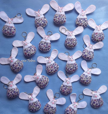 Chaveiros em formato de ovo e carinha de coelho.
