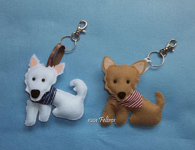 Para ela eu fiz chaveiros, um de cada: gatinho frajola SRD e uma SRD com boxer malhadinha cinza.Pastor suíço e Chihuahua.