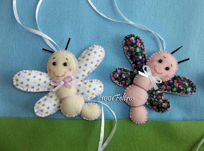 Essas pequenas libélulas de feltro foram feitas para decoração de uma festinha.