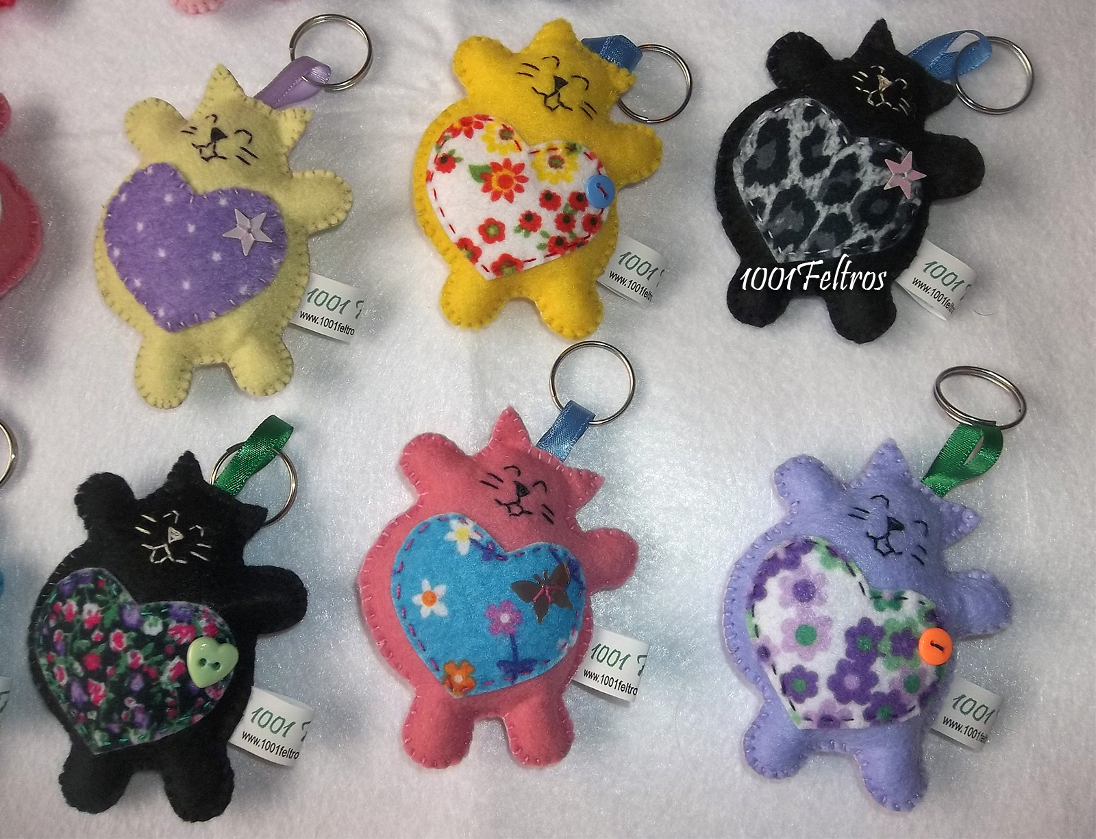 Foram vários chaveiros de gato e cachorro, estampados, sortidos todos bem coloridos.